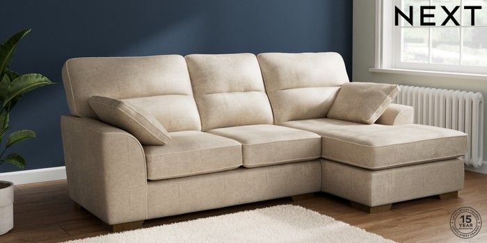 7.2.10 Stamford Highback Medium Sofa Chaise - Right Hand Plush Chenille Light Natural Large Square Angle - Mid | Made Click here to use our website with more accessibility support, for example screen readers