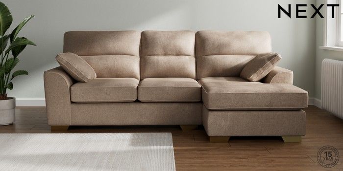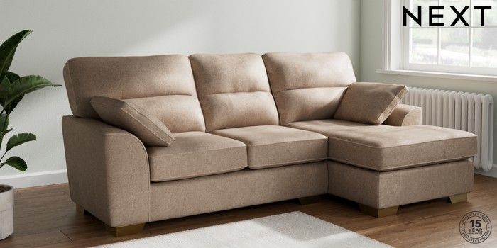 7.2.10 Stamford Highback Medium Sofa Chaise - Right Hand Plush Chenille Mid Natural Large Square Angle - Brushed Brass | Made Click here to use our website with more accessibility support, for example screen readers