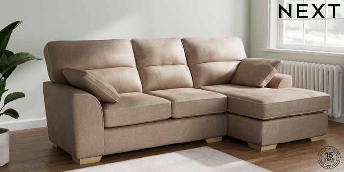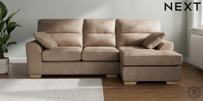 7.2.10 Stamford Highback Medium Sofa Chaise - Right Hand Plush Chenille Mid Natural Large Square Angle - Light | Made Click here to use our website with more accessibility support, for example screen readers