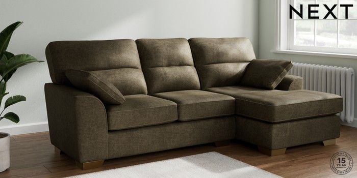 7.2.10 Stamford Highback Medium Sofa Chaise - Right Hand Plush Chenille Moss Green Large Square Angle - Brushed Brass | Made Click here to use our website with more accessibility support, for example screen readers