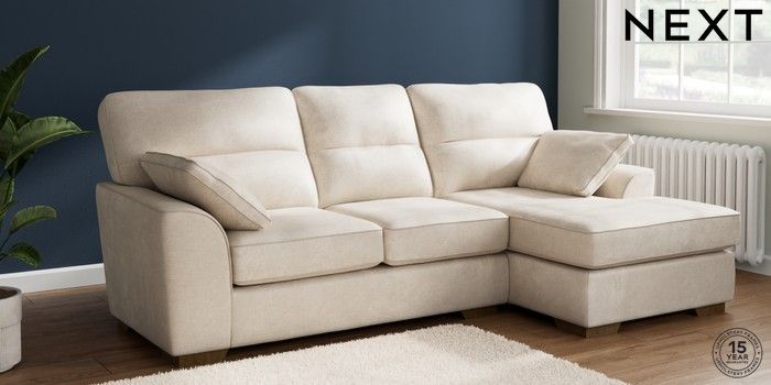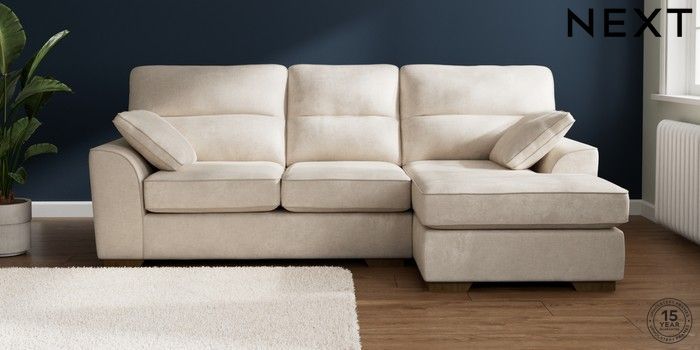 7.2.10 Stamford Highback Medium Sofa Chaise - Right Hand Plush Chenille Oyster Large Square Angle - Mid | Made Click here to use our website with more accessibility support, for example screen readers
