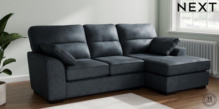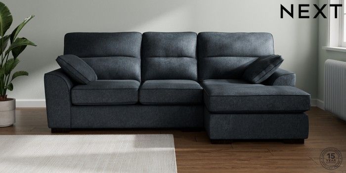 7.2.10 Stamford Highback Medium Sofa Chaise - Right Hand Plush Chenille Slate Blue Large Square Angle - Dark | Made Click here to use our website with more accessibility support, for example screen readers