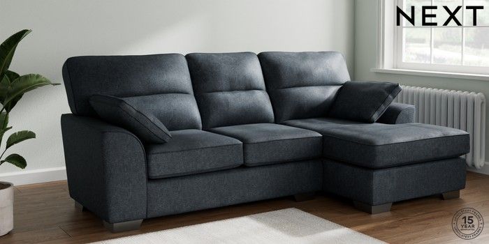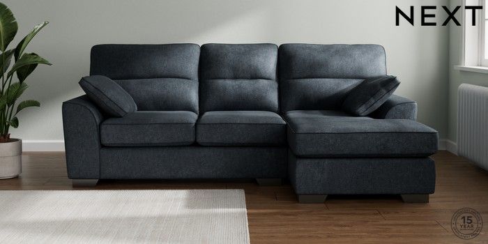 7.2.10 Stamford Highback Medium Sofa Chaise - Right Hand Plush Chenille Slate Blue Large Square Angle - Gunmetal | Made Click here to use our website with more accessibility support, for example screen readers