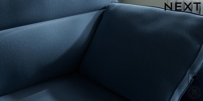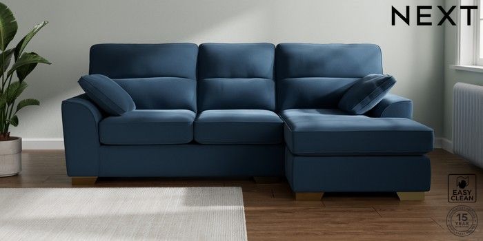7.2.10 Stamford Highback Medium Sofa Chaise - Right Hand Plush Velvet Easy Clean Airforce Blue Large Square Angle - Brushed Brass | Made Click here to use our website with more accessibility support, for example screen readers