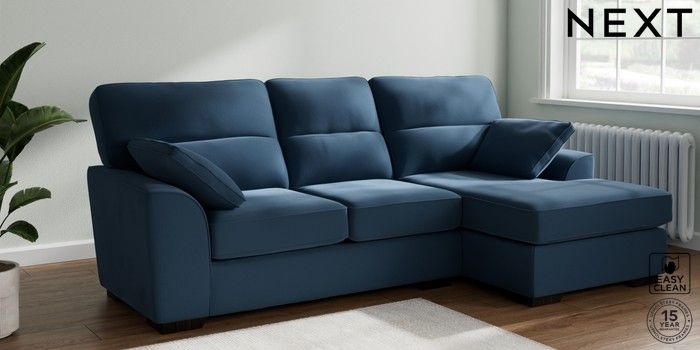 7.2.10 Stamford Highback Medium Sofa Chaise - Right Hand Plush Velvet Easy Clean Airforce Blue Large Square Angle - Dark | Made Click here to use our website with more accessibility support, for example screen readers