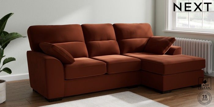 7.2.10 Stamford Highback Medium Sofa Chaise - Right Hand Plush Velvet Easy Clean Ginger Orange Large Square Angle - Dark | Made Click here to use our website with more accessibility support, for example screen readers