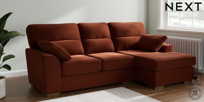 7.2.10 Stamford Highback Medium Sofa Chaise - Right Hand Plush Velvet Easy Clean Ginger Orange Large Square Angle - Mid | Made Click here to use our website with more accessibility support, for example screen readers