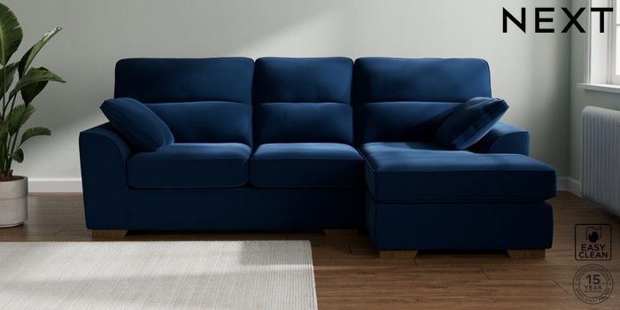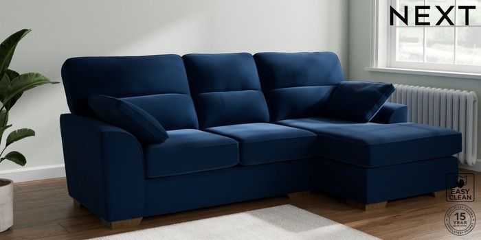 7.2.10 Stamford Highback Medium Sofa Chaise - Right Hand Plush Velvet Easy Clean Navy Blue Large Square Angle - Mid | Made Click here to use our website with more accessibility support, for example screen readers
