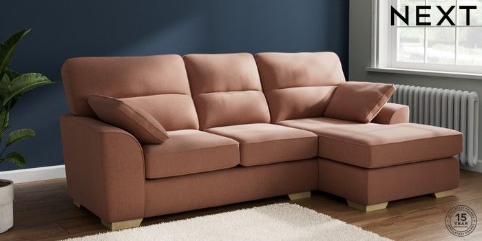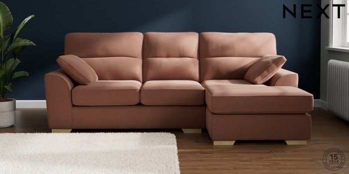 7.2.10 Stamford Highback Medium Sofa Chaise - Right Hand Relaxed Linen Look Light Rust Brown Large Square Angle - Light | Made Click here to use our website with more accessibility support, for example screen readers