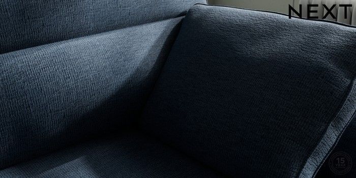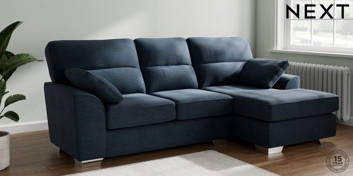 7.2.10 Stamford Highback Medium Sofa Chaise - Right Hand Ripple Chenille Dark Blue Large Square Angle - Chrome Metal | Made Click here to use our website with more accessibility support, for example screen readers