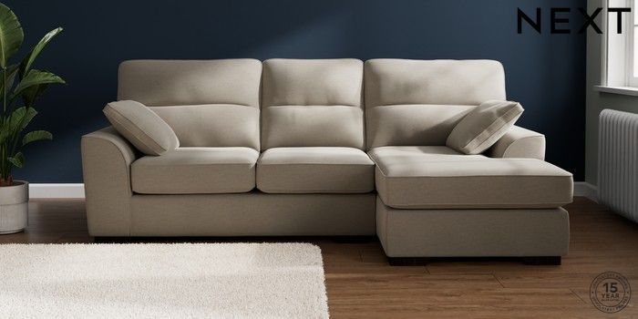 7.2.10 Stamford Highback Medium Sofa Chaise - Right Hand Ripple Chenille Light Natural Large Square Angle - Dark | Made Click here to use our website with more accessibility support, for example screen readers