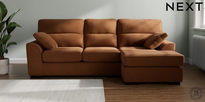 7.2.10 Stamford Highback Medium Sofa Chaise - Right Hand Ripple Chenille Mid Rust Brown Large Square Angle - Dark | Made Click here to use our website with more accessibility support, for example screen readers
