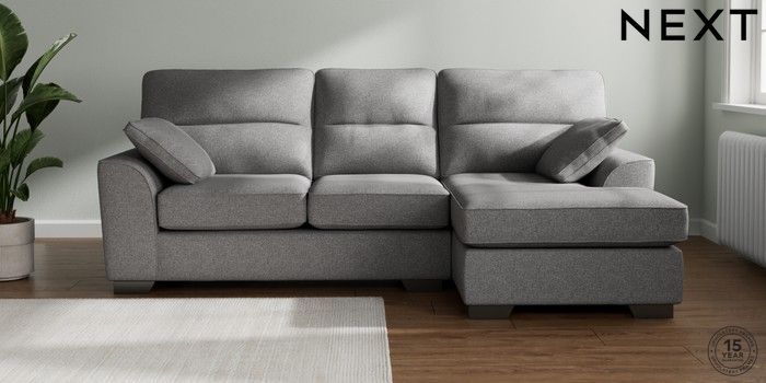 7.2.10 Stamford Highback Medium Sofa Chaise - Right Hand Studio Chenille Mid Grey Large Square Angle - Gunmetal | Made Click here to use our website with more accessibility support, for example screen readers