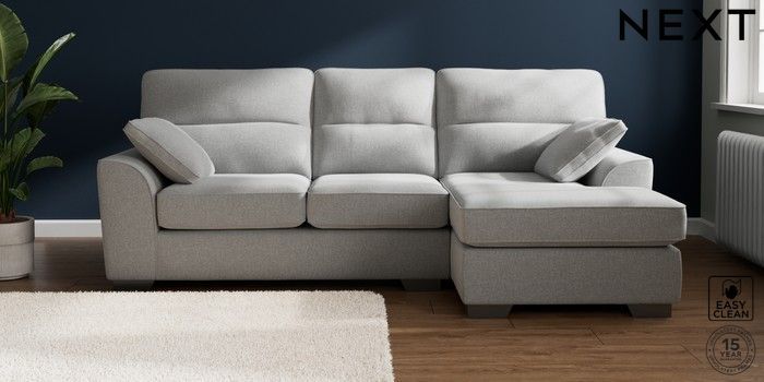 7.2.10 Stamford Highback Medium Sofa Chaise - Right Hand Tweedy Blend Easy Clean Light Silver Grey Large Square Angle - Gunmetal | Made Click here to use our website with more accessibility support, for example screen readers