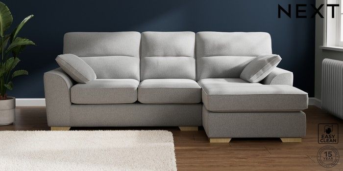 7.2.10 Stamford Highback Medium Sofa Chaise - Right Hand Tweedy Blend Easy Clean Light Silver Grey Large Square Angle - Light | Made Click here to use our website with more accessibility support, for example screen readers