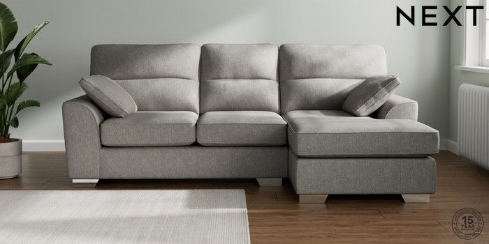 7.2.10 Stamford Highback Medium Sofa Chaise - Right Hand Tweedy Chenille Mid Grey Large Square Angle - Chrome Metal | Made Click here to use our website with more accessibility support, for example screen readers