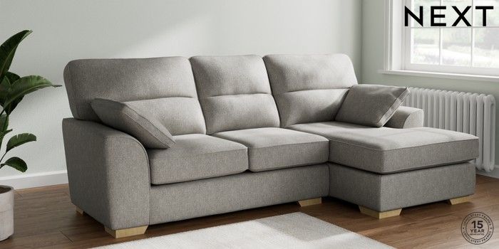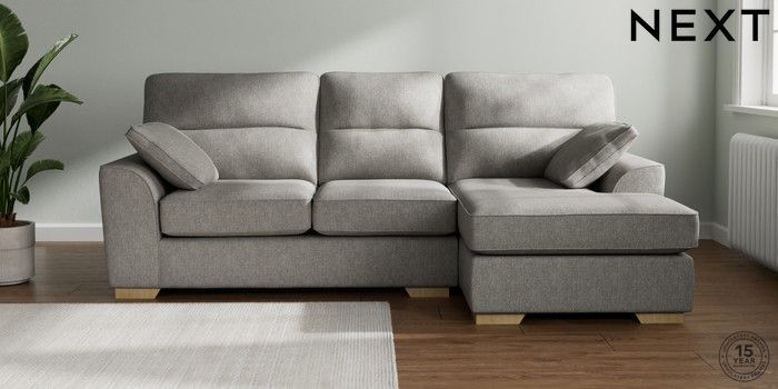 7.2.10 Stamford Highback Medium Sofa Chaise - Right Hand Tweedy Chenille Mid Grey Large Square Angle - Light | Made Click here to use our website with more accessibility support, for example screen readers