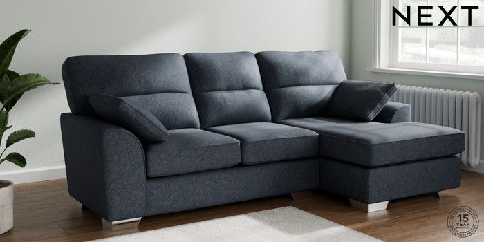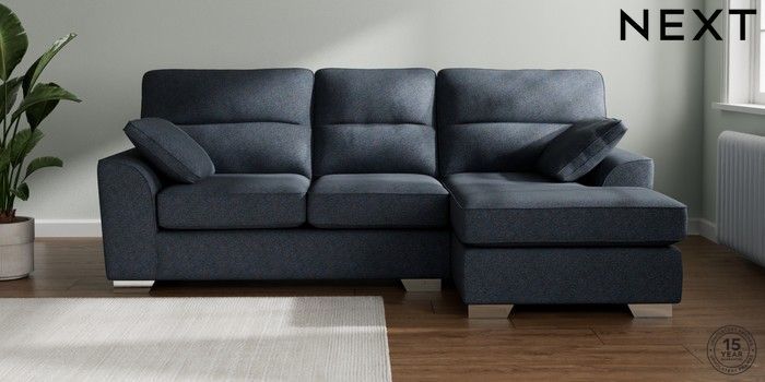7.2.10 Stamford Highback Medium Sofa Chaise - Right Hand Tweedy Chenille Navy Blue Large Square Angle - Chrome Metal | Made Click here to use our website with more accessibility support, for example screen readers