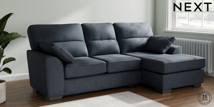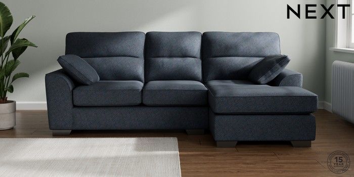 7.2.10 Stamford Highback Medium Sofa Chaise - Right Hand Tweedy Chenille Navy Blue Large Square Angle - Gunmetal | Made Click here to use our website with more accessibility support, for example screen readers