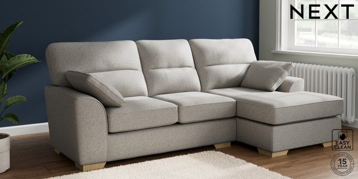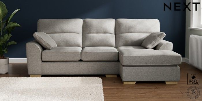 7.2.10 Stamford Highback Medium Sofa Chaise - Right Hand Woven Chenille Easy Clean Light Grey Large Square Angle - Light | Made Click here to use our website with more accessibility support, for example screen readers