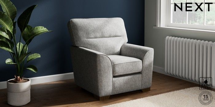 7.2.10 Stamford Highback Small Armchair Chunky Boucle Easy Clean Light Grey Square Angle - Mid | Made Click here to use our website with more accessibility support, for example screen readers