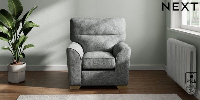 7.2.10 Stamford Highback Small Armchair Chunky Boucle Easy Clean Mid Grey Square Angle - Light | Made Click here to use our website with more accessibility support, for example screen readers