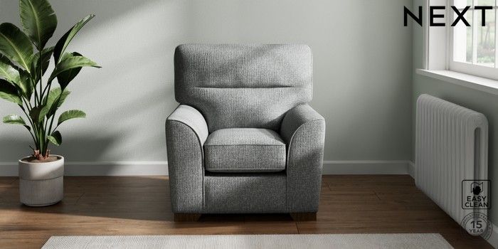 7.2.10 Stamford Highback Small Armchair Chunky Boucle Easy Clean Mid Grey Square Angle - Mid | Made Click here to use our website with more accessibility support, for example screen readers