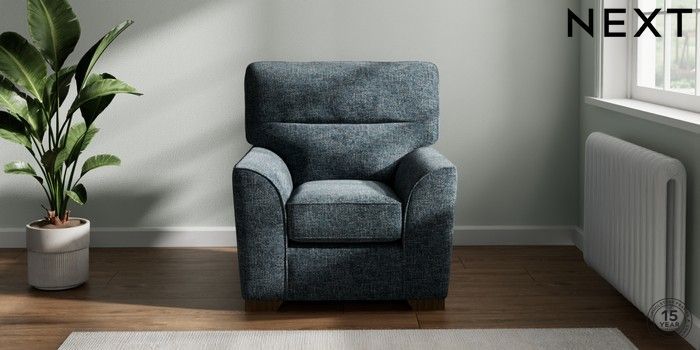 7.2.10 Stamford Highback Small Armchair Chunky Chenille Dark Navy Blue Square Angle - Mid | Made Click here to use our website with more accessibility support, for example screen readers