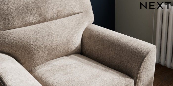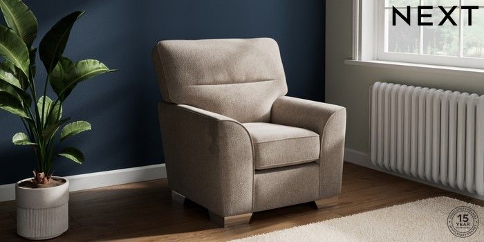 7.2.10 Stamford Highback Small Armchair Chunky Chenille Light Dove Square Angle - Chrome Metal | Made Click here to use our website with more accessibility support, for example screen readers