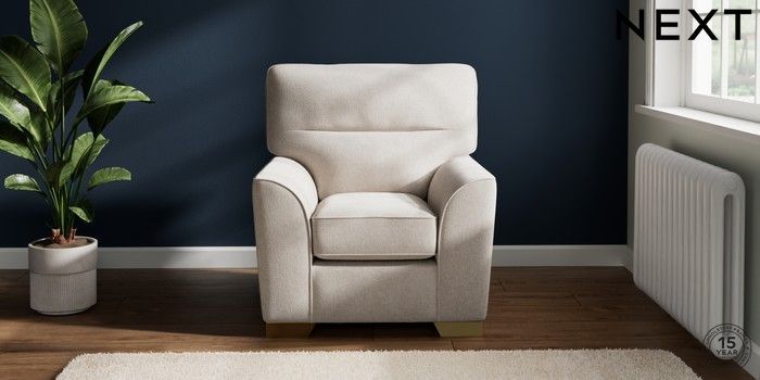 7.2.10 Stamford Highback Small Armchair Chunky Chenille Oyster Square Angle - Brushed Brass | Made Click here to use our website with more accessibility support, for example screen readers