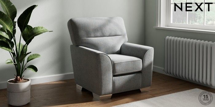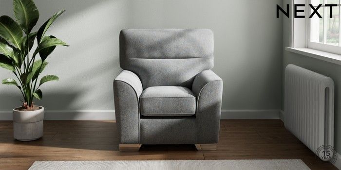 7.2.10 Stamford Highback Small Armchair Chunky Marl Mid Grey Square Angle - Chrome Metal | Made Click here to use our website with more accessibility support, for example screen readers