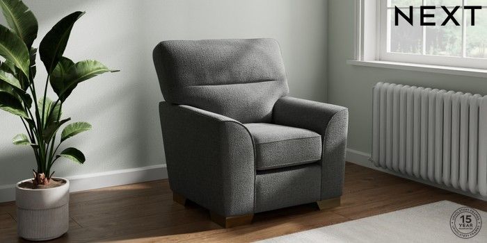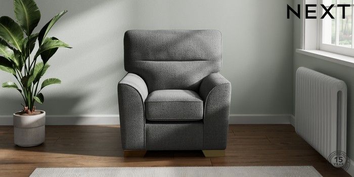 7.2.10 Stamford Highback Small Armchair Chunky Texture Dark Grey Square Angle - Brushed Brass | Made Click here to use our website with more accessibility support, for example screen readers