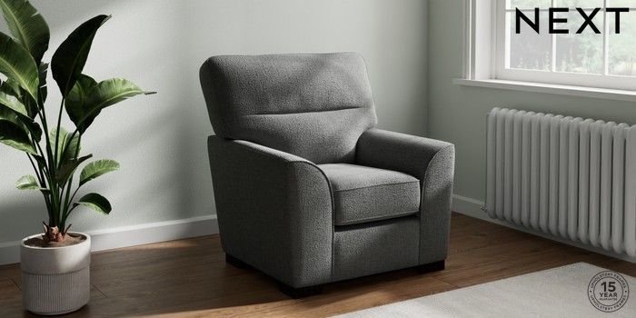7.2.10 Stamford Highback Small Armchair Chunky Texture Dark Grey Square Angle - Dark | Made Click here to use our website with more accessibility support, for example screen readers