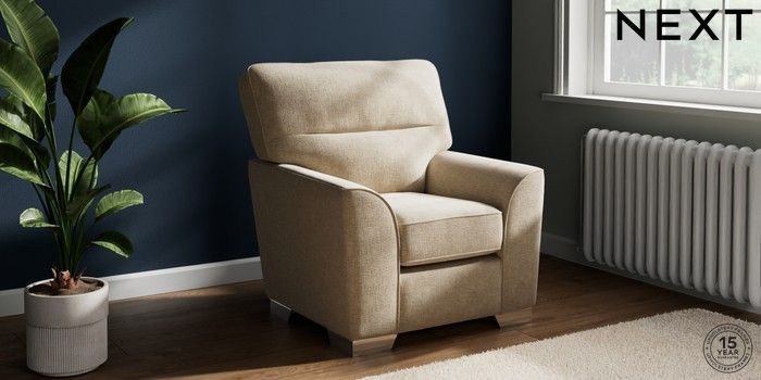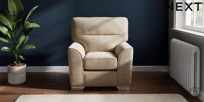 7.2.10 Stamford Highback Small Armchair Chunky Weave Cream Square Angle - Chrome Metal | Made Click here to use our website with more accessibility support, for example screen readers