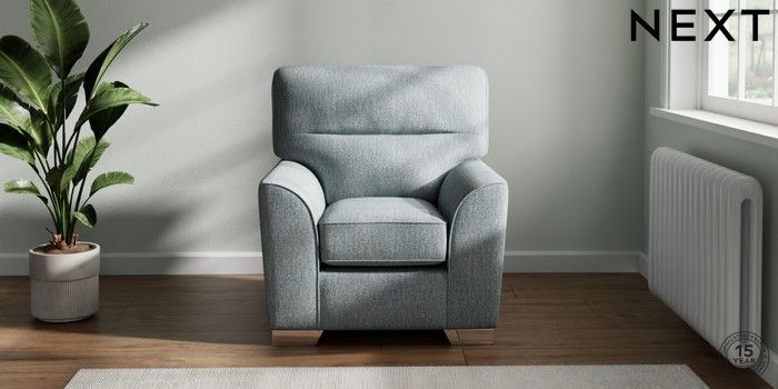 7.2.10 Stamford Highback Small Armchair Chunky Weave Mid Blue Square Angle - Chrome Metal | Made Click here to use our website with more accessibility support, for example screen readers
