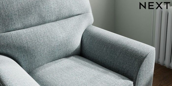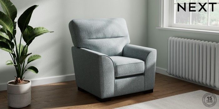 7.2.10 Stamford Highback Small Armchair Chunky Weave Mid Blue Square Angle - Dark | Made Click here to use our website with more accessibility support, for example screen readers