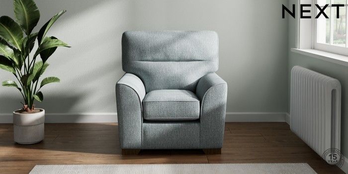 7.2.10 Stamford Highback Small Armchair Chunky Weave Mid Blue Square Angle - Mid | Made Click here to use our website with more accessibility support, for example screen readers