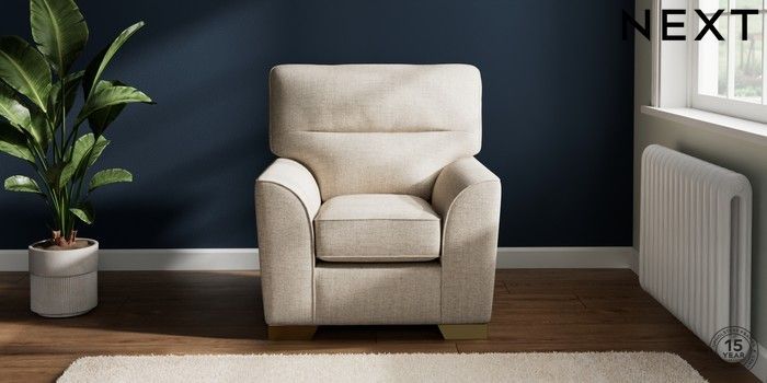 7.2.10 Stamford Highback Small Armchair Chunky Weave Mid Natural Square Angle - Brushed Brass | Made Click here to use our website with more accessibility support, for example screen readers