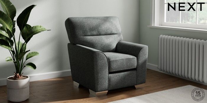 7.2.10 Stamford Highback Small Armchair Cotswold Chenille Dark Grey Square Angle - Chrome Metal | Made Click here to use our website with more accessibility support, for example screen readers
