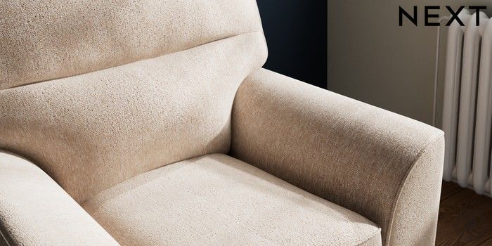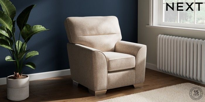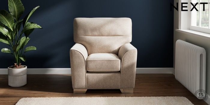 7.2.10 Stamford Highback Small Armchair Cotswold Chenille Light Natural Square Angle - Chrome Metal | Made Click here to use our website with more accessibility support, for example screen readers