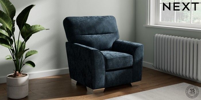 7.2.10 Stamford Highback Small Armchair Distressed Velour Midnight Blue Square Angle - Chrome Metal | Made Click here to use our website with more accessibility support, for example screen readers
