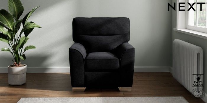 7.2.10 Stamford Highback Small Armchair Fine Chenille Easy Clean Black Square Angle - Chrome Metal | Made Click here to use our website with more accessibility support, for example screen readers