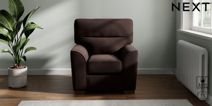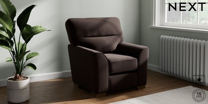 7.2.10 Stamford Highback Small Armchair Fine Chenille Easy Clean Chocolate Brown Square Angle - Mid | Made Click here to use our website with more accessibility support, for example screen readers