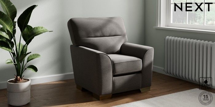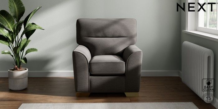 7.2.10 Stamford Highback Small Armchair Fine Chenille Easy Clean Dark Smoke Grey Square Angle - Brushed Brass | Made Click here to use our website with more accessibility support, for example screen readers
