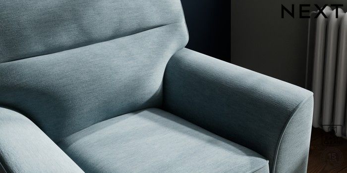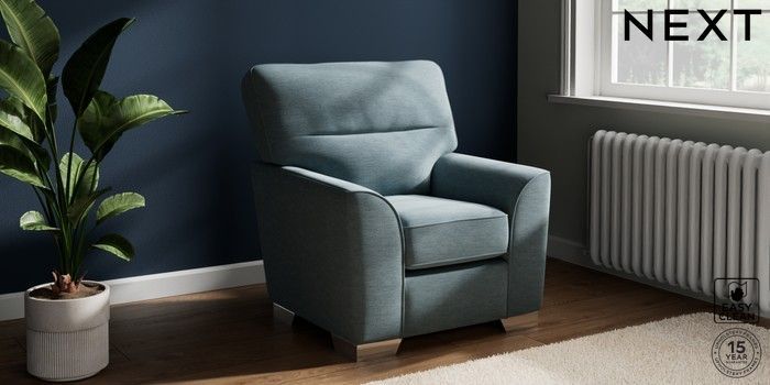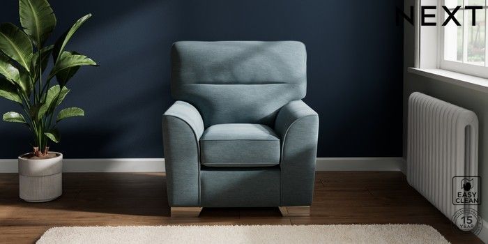 7.2.10 Stamford Highback Small Armchair Fine Chenille Easy Clean Mid Blue Square Angle - Chrome Metal | Made Click here to use our website with more accessibility support, for example screen readers