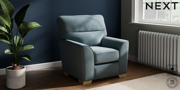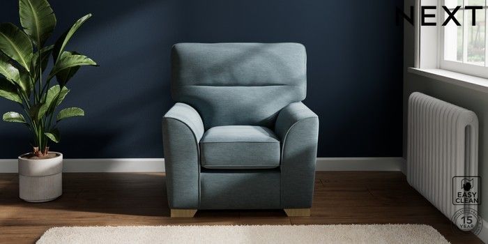 7.2.10 Stamford Highback Small Armchair Fine Chenille Easy Clean Mid Blue Square Angle - Light | Made Click here to use our website with more accessibility support, for example screen readers