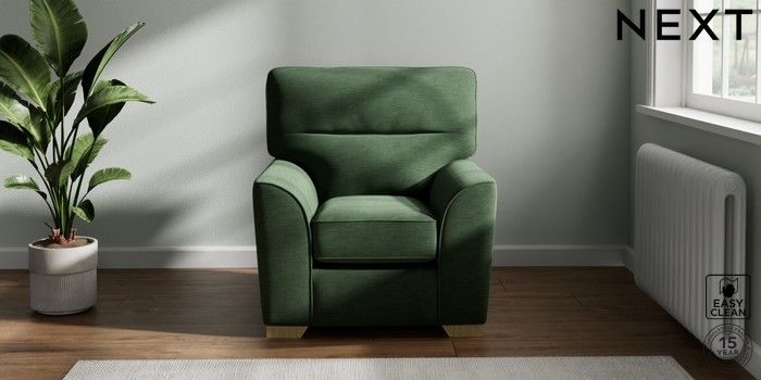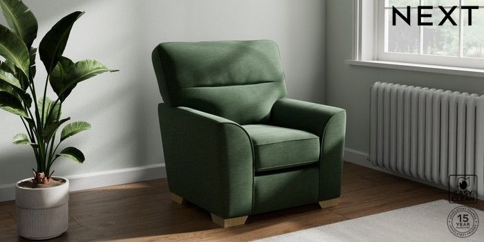 7.2.10 Stamford Highback Small Armchair Fine Chenille Easy Clean Mid Khaki Green Square Angle - Light | Made Click here to use our website with more accessibility support, for example screen readers