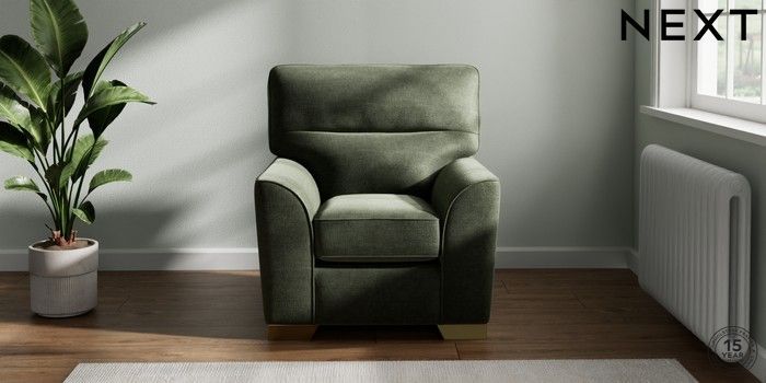 7.2.10 Stamford Highback Small Armchair Luxe Chenille Mid Green Square Angle - Brushed Brass | Made Click here to use our website with more accessibility support, for example screen readers