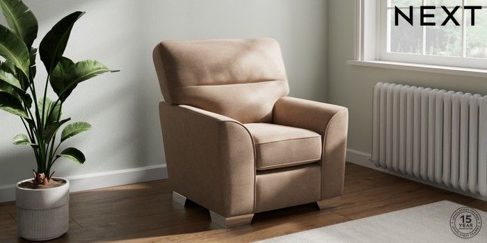 7.2.10 Stamford Highback Small Armchair Luxe Chenille Mid Natural Square Angle - Chrome Metal | Made Click here to use our website with more accessibility support, for example screen readers