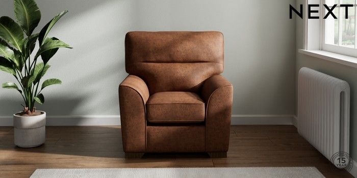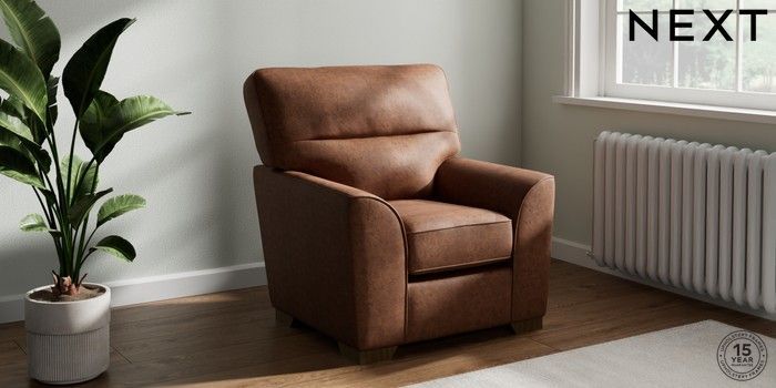 7.2.10 Stamford Highback Small Armchair Monza Faux Leather Easy Clean Chestnut Brown Square Angle - Mid | Made Click here to use our website with more accessibility support, for example screen readers